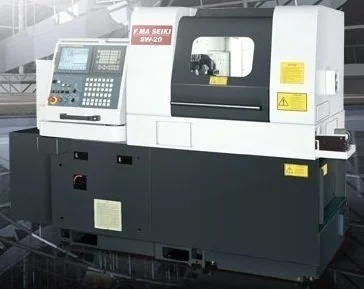 Explore precision with the new YAMA SEIKI SW-32 CNC Lathe. Two-axis control, 32mm bar capacity, 7.5kW power. Maximize your turning efficiency. No tailstock.